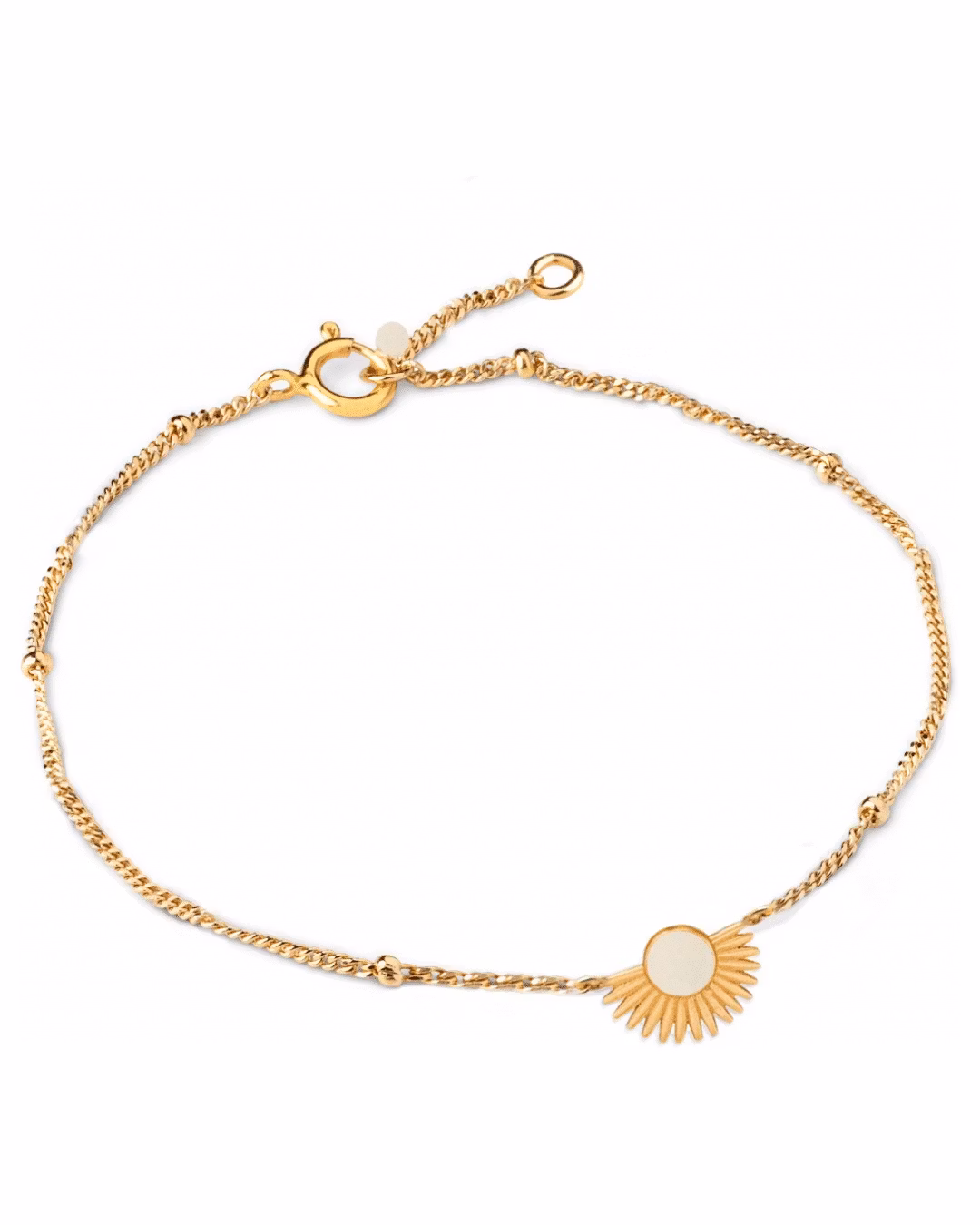 BRACELET SOLEIL DAISY 500 kr Legg i handlekurv Del Informasjon Pent armbånd med fin lenke og fast charm med emalje i støvet, lysegrønn.Lengde: 15,5+2 cmLaget av 18k gullforgylt sølv